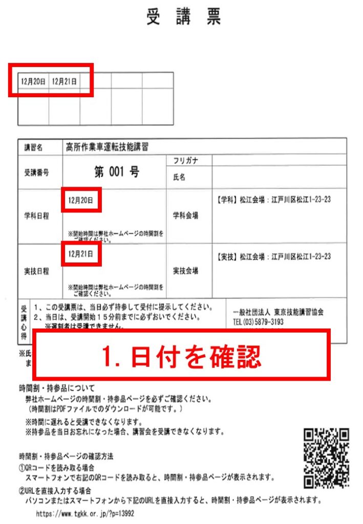 当日は、講習開始15分前から受付をしております。講習開始10分前までに必ずお越しください。 ※遅刻者は受講できません。