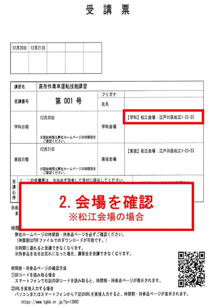 ログイン受講票は当日必ず持参して受付に提示してください。
