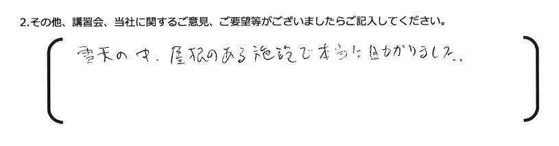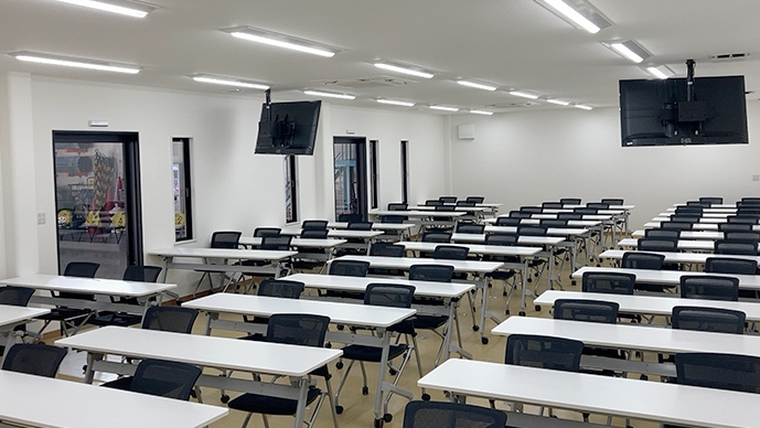 全天候型、実技会場エアコンフル完備で