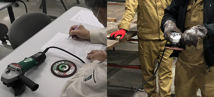 | 実技 | 自由研削用といしの取付け方法についての実技教育 | 2時間 | |||||||